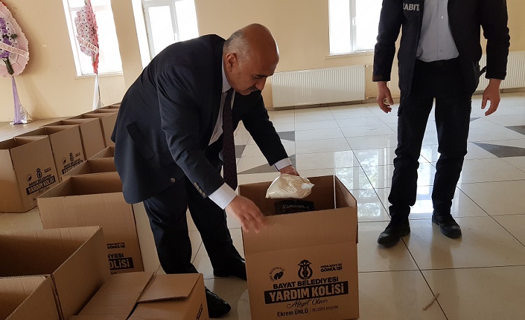Çorum’un Bayat Belediyesi tarafından önceden belirlenen yetim, fakir ve muhtaç 250 aileye Ramazan kolileri hazırladı.