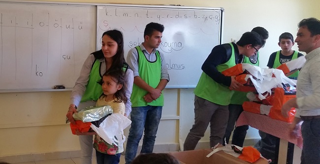 Merkez Müdürü Fatih Şanlı, projenin Nisan ayı temasının “Yardımlaşma-Hediyeleşme” olarak belirlendiğini dile getirerek, İskilip Meslekî Eğitim Merkezi’nde eğitim alan çırak öğrenciler tarafından hazırlanan, içerisinde eşofman takımı ve spor ayakkabı bulunan hediye paketlerinin ilçedeki 40 öğrenciye ulaştırıldığını söyledi.