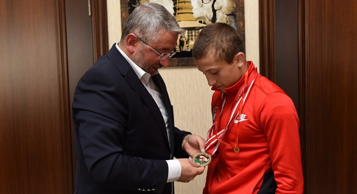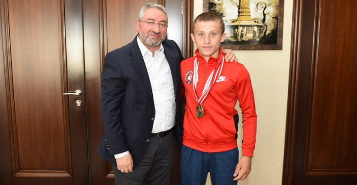 BAŞKAN ŞAMPİYON GÜREŞÇİYİ ÖDÜLLENDİRDİ
