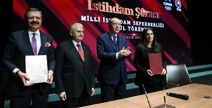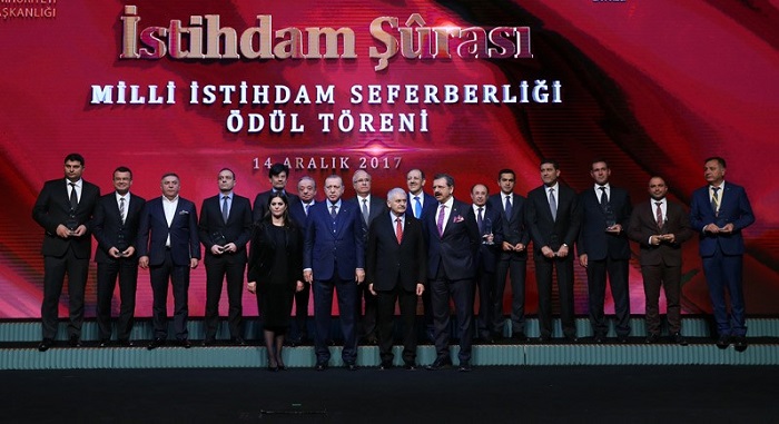 Cumhurbaşkanı Recep Tayyip Erdoğan’ın himayesinde gerçekleştirilen istihdam seferberliğinde dereceye giren kurumlar, Külliye’de düzenlenen törenle ödüllendirildi. Çorum’da sağladığı 3 bin 25 kişilik istihdamla, milli istihdam seferberliğine katkı sağlayan Ahlatcı Holding Yönetim Kurulu Başkanı Ahmet Ahlatcı, aldığı ödülle hemşehrilerini de gururlandırırken, pek çok sektörde yaptığı yatırımlarıyla, istihdam konusunda Çorum’un birincisi oldu. Cumhurbaşkanı Recep Tayyip Erdoğan, Başbakan Binali Yıldırım, Çalışma ve Sosyal Güvenlik Bakanı Jülide Sarıeroğlu, Türkiye odalar ve Borsalar Birliği (TOBB) Başkanı Rıfat Hisarcıklıoğlu’nun yer aldığı sahneye gelerek ödüllerini aldı.
