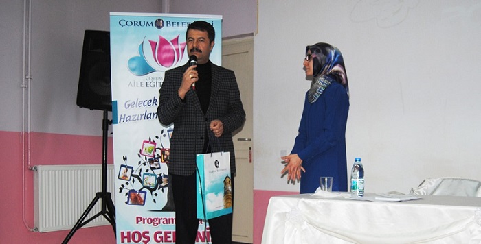Çorum Belediyesi tarafından Ertuğrul Gazi İlkokulu ile ortaklaşa yürütülen “Aile Okulu Projesi” ile ailelere yönelik seminerler devam ediyor. Çorum Belediyesi Aile Eğitim Merkezi tarafından yürütülen proje kapsamında her hafta alanında uzman pedagog, çocuk psikiyatri uzmanı ve eğitimciler farklı konularda ailelere eğitim vermeye devam ediyor. 6 hafta sürecek olan eğitim seminerlerinde bu hafta Eğitmen Şule Sadal tarafından biblio terapi hakkında bilgiler verdi. Doğru kitapla doğru kişinin doğru zamanda bir araya gelmesine biblio terapi dendiğini ifade eden Şule Sadal, “Biblio terapi üç aşamadan oluşmaktadır. Birincisi çocuğun kahramanla kendini özleştirme, ikincisi içselleştirme yani sorunu kabul etme evresi, üçüncü aşama ise çözüm üretmedir. Bu terapide ailelere düşen rol ise çocuğunu iyi tanımak ve çocuğuna uygun kitabı yada hikayeyi bulmaktır.” diye konuştu.