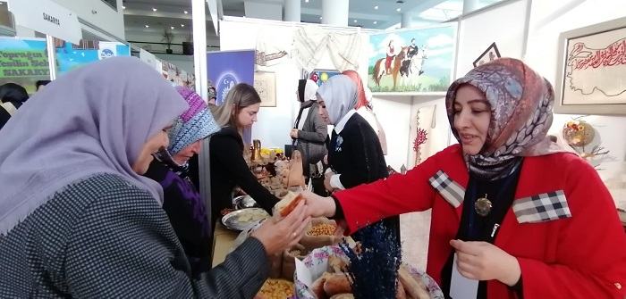 AK Parti İl Kadın Kolları teşkilatı geçtiğimiz hafta Ankara’da düzenlenen “Yerel Yönetimlerde Kadın Şurası”nda ve “Kadınlar Yerli Üretir, Ekonomiye Destek Verir” düşüncesinden hareketle Çorum ‘da düzenlenen kadın emeği çarşısıyla ekonomiye can verdi. Geçtiğimiz hafta AK Parti Genel Merkez Kadın Kolları Başkanlığı tarafından Ankara’da düzenlenen Uluslararası Yerel Yönetimlerde Kadın Şurası’ na katılarak açtıkları Çorum standı ile Çorum’un yöresel ürünlerinin tanıtımını yapan Çorumlu kadınlar 13-14-15 Aralık tarihlerinde de İl ve İlçe teşkilatlarının katılımıyla kadınların ürettiği ürünlerin satışının yapılarak gelir elde ettiği kadın emeği çarşısı düzenlendi. Yapılan çalışmalar ile ilgili bilgi veren AK Parti İl Kadın Kolları Başkanı Meryem Demir şu açıklamalarda bulundu; “Geçtiğimiz hafta il, ilçe kadın kolları teşkilatlarımız, kadın kültür merkezlerimizle birlikte Uluslararası Kadın Şurasında Çorum standımızla Çorum’umuzun yöresel ürünlerinin tanıtımını yaptık. İl, ilçe, belde belediye başkanlarımız ve çok sayıda teşkilat mensubumuzun da katılımıyla gittiğimiz Ankara’da Çorum standımız gelen misafirler tarafından yoğun ilgi gördü. Ankara programımızın akabinde de Çorum ‘da kadınların ürettiği ürünlerin satışının yapıldığı kadın emeği çarşımızı düzenleyerek kadınlarımızın ekonomiye katkı sunmasını sağladık. kadın emeği çarşımızda stant açarak ekonomiye katkı sunan tüm kadınlarımızı yaptıkları çalışmalardan ekonomiye desteklerinden dolayı tebrik ediyorum. Açılışımızda yanımızda bulunan, kadın emeği çarşımız devam ederken bizleri yalnız bırakmayan herkese, stantlarımızdan alışveriş yaparak kadınlarımıza ekonomik destekte bulunan Çorumlu hemşehrilerimize teşekkür ederim ”