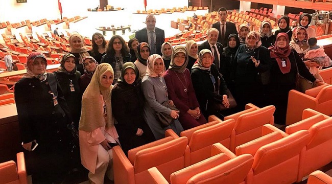 Çorum Milletvekili ve TBMM İdare Amiri Salim Uslu’nun girişimleri ile Ak Parti Alaca Kadın Kolları Cumhurbaşkanı Recep Tayyip Erdoğan’ın katılımı ile gerçekleşen AK Parti grup toplantısına katıldılar. AK Parti grup toplantısında Cumhurbaşkanı Erdoğan’ı dinledik den sonra Çorum Milletvekili ve TBMM İdare Amiri Salim Uslu ile kısa bir görüşme yaparak istişarelerde bulundular. Alaca Kadın Kolları heyetini Cumhurbaşkanı ve Ak Parti Genel Başkanı Recep Tayyip Erdoğan ile bir araya gelmelerini sağlayan Uslu, Gazi Meclis’i gezdirerek 15 Temmuz gecesi yaşananlar ve TBMM Genel Kurulunun işleyişi hakkında da bilgiler verdi. Uslu, “Yeni Türkiye Mücadelemizde bizleri yalnız bırakmayan Ak yürekli, Ak sevdalı gönüldaşlarımızı Ankara’da ağırladık. 24 Haziran seçimleri ülkemizin kader seçimidir. Cumhurbaşkanımız Recep Tayyip Erdoğan’ın arkasında güçlü bir irade var. Cumhurbaşkanımızı külliyede yalnız bırakmama, 15 Temmuz millet iradesini sürdürmek, AK Parti’nin Türkiye’nin kaderiyle örtüşen konumunu güçlendirmek adına mecliste güçlü bir irade ile temsil edilmelidir. Kadın kollarımız, yılmadan, yorulmadan, sıkılmadık el, girilmedik ev bırakmadan kutsal davamızı bir oya gibi, nakış gibi işleyerek emin adımlarla 2023 hedeflerimize yürüyoruz. Biz milletimize gönülden bağlı olduğumuz, her işimizi de milletimizin gönlüne girmemeyi amaçlayarak yaptığımız için 15 yıldır iktidardayız. Yaptığınız çalışmalardan, emeklerinizden dolayı teşekkür ediyoruz” dedi.