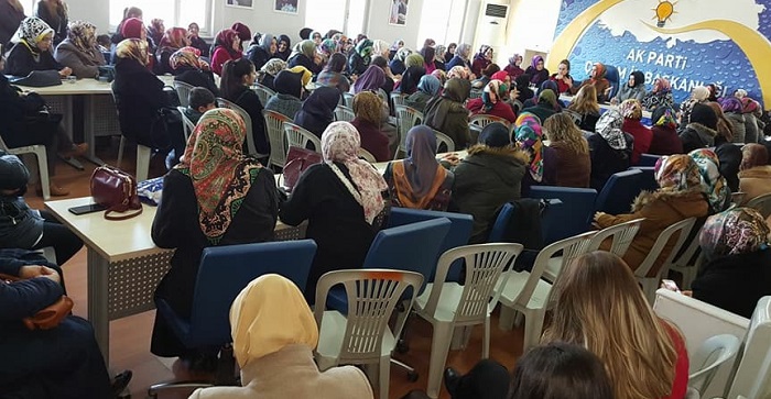 AK Parti İl Kadın Kolları Başkanı Meryem Demir mahalle yönetimleri ve gönüllülerle istişare toplantısı gerçekleştirerek gündeme dair konular, teşkilatlanma çalışmaları ve kadın kolları olarak gerçekleştirecekleri projeler hakkında bilgilendirmelerde bulundu. Cumhurbaşkanı Recep Tayyip Erdoğan’ın katılımı ile gerçekleştirilecek İl Başkanlığı kongresi ile ilgili mahalle teşkilatlarına bilgilendirmede bulunan İl Kadın Kolları Başkanı Meryem Demir; “İçerde ve dışarda dört bir yanı düşmanla çevrili olan Ülkemizin Afrin’e operasyon düzenlenerek terör örgütlerine karşı mücadele edildiği bu süreçte dualarımız ordumuzla, Mehmetçiğimizle. Ya Rabbi Ordumuzu muzaffer kılsın. Terörle mücadele konusunda dimdik bir şekilde mücadele edip Dünyaya meydan okuyan Cumhurbaşkanımız Recep Tayyip Erdoğan’ın bu mücadelesinde bizler de AK Kadınlar olarak her zaman yanındayız. Kurtuluş Savaşı’nda Nene Hatun olup, 15 Temmuz’da Şerife Boz olup mücadele eden Türk kadını her daim ülkesinin güvenliği ve huzuru için mücadele etmeye hazırdır. 28 Ocak’ta Cumhurbaşkanımız Recep Tayyip Erdoğan’ın katılımı ile gerçekleştirilecek İl Başkanımız Mehmet Karadağ’ın tekrar seçileceği İl Başkanlığı Kongresinde Çorumlu AK Kadınlar olarak tüm desteğimiz ve coşkumuzla kongrede yer alacağız.