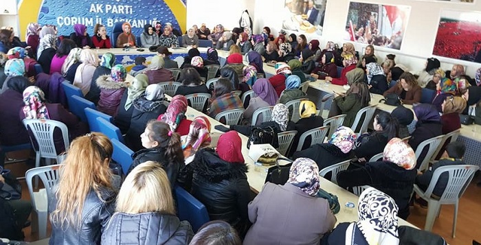Cumhurbaşkanımızın Dünya lideri olarak düşmanlara karşı böyle güçlü ve dik durabilmesi O’na destek veren ve her zaman yanında olan güçlü teşkilatlar ve gönüllülerle. Bizler de yerelde gönüllülerin birlik ve beraberliği ile güçlü bir teşkilat olursak Partimiz de Uluslararası arenada güçlü olur. Her birimiz bir zincirin halkası gibi birbirimize bağlıyız birimiz zayıf düşersek tüm zincir kopar. Biz AK Kadınlar da bu zincirin halkası olarak İl Başkanımızın her zaman yanında güçlü bir şekilde duracağız. Çorum’daki AK Parti’ye gönül vermiş tüm kadınları 28 Ocak’ta İl Başkanlığı Kongresine bekliyorum” şeklinde açıklamalarda bulundu. Yaptıkları sosyal faaliyetlere ve projelere ilişkin bilgilendirme yapan Demir şu şeklide konuştu; “ Gerek teşkilatlanma gerekse kadınlara ve çocuklara yönelik sosyal çalışmalar ile her zaman insanların gönüllerinde yer almaya çalıştık. Önümüzdeki süreçte gerçekleştireceğimiz iki güzel projemiz var. Bunlardan biri Hitit Üniversitesi ve KOSGEB işbirliği ile gerçekleştireceğimiz ve 60 kadının faydalanacağı girişimcilik kursu.