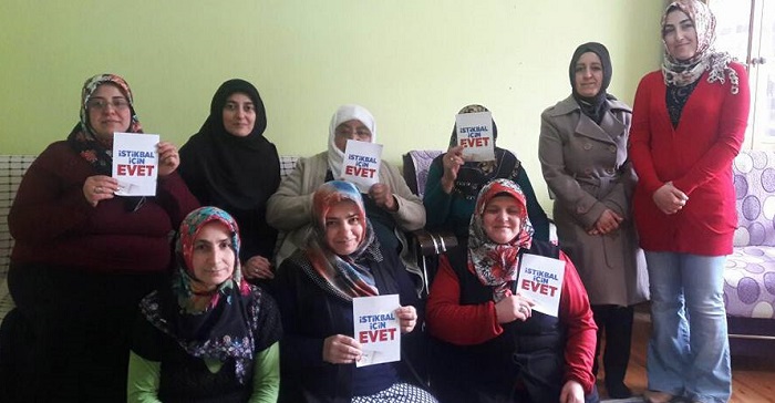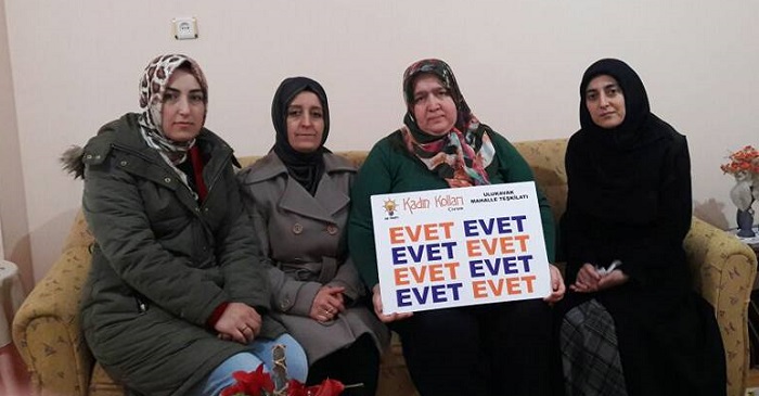 Meryem Demir Başkanlığındaki AK Parti Çorum Kadın Kolları, referandum için yoğun bir şekilde çalışıyor. 15 günde 300 ev ziyareti, yapan kadın kolları referanduma kadar çalınmadık kapı bırakmamak için çaba sarf ediyor. Kadın Kolları İl Yönetimi, Mahalle Teşkilatları referandumda halkın bilinçli bir şekilde evet oyu vermesi için kapı kapı dolaşarak Cumhurbaşkanlığı Hükümeti Sistemini anlatıyor. 15 günde 300 ev ziyareti, 100 esnaf ziyareti yapan kadın kolları referanduma kadar çalınmadık kapı bırakmamak için çaba sarf ediyor. Gerçekleştirilen ziyaretlerin birçoğuna bizzat katılarak insanları bilgilendirmeye çalışan Kadın Kolları Başkanı Meryem Demir, “Ülkemizin daha demokratik bir şekilde yönetilmesi, geçmişte çift başlılıktan dolayı yaşanan kaos ortamlarının tekrar yaşanmaması, halk iradesinin Mecliste daha etkin temsili için Cumhurbaşkanlığı Hükümeti Sistemine evet diyoruz” dedi.