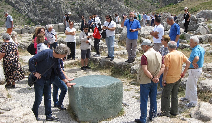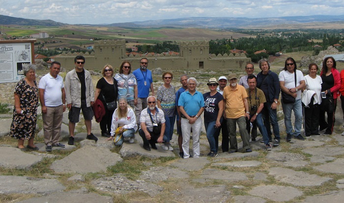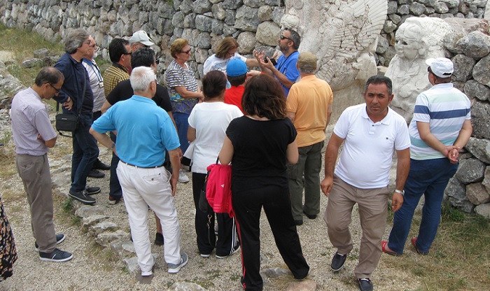 Akademik Tarih Eğitim ve Kültür Derneği (AKADEMİK-DER) tarafından organize edilen ‘Çorum-Amasya Tarih Turu’, 12-15 Temmuz 2019 tarihlerinde gerçekleşti. Dernek Başkanı Oğuzhan Kavaklı öncülüğünde düzenlenen geziye İzmir’den katılan yaklaşık 30 kişilik kafile geçtiğimiz Cumartesi günü Çorum’a geldi. 22. Dönem İzmir Milletvekili Hakkı Ülkü’nün de aralarında bulunduğu kafilede gazeteciler, akademisyenler ve hukukçular yer aldı. Tarih turunun ilk durağı olan Hattuşa’da Cengiz Aşıkoğlu’nun sahibi olduğu Aşıkoğlu Hotel’de kahvaltı eden grup, Boğazkale Kaymakamı Yunus Ataman tarafından tarihi Dulkadiroğulları Konağı’nda ağırlandılar. Boğazköy Müzesi çalışanlarından Murat Kölemen eşliğinde Hattuşa Örenyeri’ni gezen gruba Profesyonel Turist Rehberi Ahmet Ercan Gül tarafından bilgiler verildi. Hattuşa’nın Aşağı Şehir bölümünde Hitit Surları ve Büyük Mabed’in ardından Yukarı Şehir’de Aslanlı Kapı, Yerkapı ve Kral Kapı’yı gezen kafile, Yazılıkaya Açıkhava Mabedi’ni de ziyaret ettiler. Hitit Yöresel El Sanatları Kooperatifi ve Arinna Halı-Kilim Kooperatifi’nden alışveriş yapan misafir kafileye, Boğazkale Kaymakamlığı’nca Hattuşa Kafe’de ikramlarda bulunuldu. Boğazkale’nin ardından Alacahöyük’e geçen AKADEMİK-DER kafilesi, Hitit Barajı’nın yanı sıra Alacahöyük Müzesi ve Örenyeri’ni gezdiler. Sfenksli Kapı, Kral Mezarları canlandırması ve kaya kabartmalarını ilgiyle inceleyen grup, tarihi turun ardından şehir merkezindeki Çorum Müzesi’ni de ziyaret ettiler. Müzenin arkeoloji ve etnografya bölümlerini gezen misafir kafile, Çorum’un ardından Amasya’ya geçtiler. Gezi sırasında misafir gruba Çorum hakkında bilgiler veren Recep Mebet şehrin nüfusu, ilçeleri, tarihi ve turistik mekanları, doğal güzellikleri, kültürel değerleri, tarım ve sanayi sektörü ile yerel medyaya ilişkin açıklamalarda bulundu. Dünyanın merkezi Çorum’un tanıtımı için yapılan çalışmalara dair bilgiler de aktaran Mebet, geziye katılan misafirlerin sorularını da cevapladı. Geziyle ilgili izlenimlerini paylaşan Dernek Başkanı Oğuzhan Kavaklı, köklü medeniyetlere ait zengin tarihi değerleri bağrında bulunduran Çorum’u çok beğendiklerini söyledi. İlerleyen dönemde Çorum’a yine turlar düzenlemeyi planladıklarını anlatan Kavaklı, “Çorum’da gerçekleştirdiğimiz tarihi turda bizlere ev sahipliği yapan Boğazkale Kaymakamı Yunus Ataman ve Basın İlan Kurumu (BİK) Anadolu Gazete Sahipleri Temsilcisi Şevket Erzen ile emeği geçen herkese şükranlarımızı sunuyoruz” dedi.
