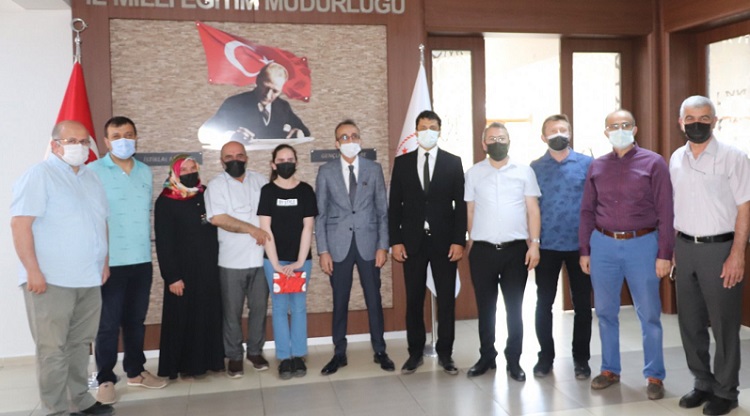 Cumhuriyet Ortaokulu’ndan bu yıl mezun alan Aleyna Yüksel’in başarı hem öğretmenlerini hem de ailesini gururlandırdı. Cumhuriyet Ortaokulu’nu ziyaret eden İl Milli Eğitim Müdürü Abdullah Kodek, başarılı öğrenciyi tebrik ederek, tablet hediye etti. Aleyna Yüksel’in başarısının kendileri için gurur kaynağı olduğunu dile getiren İl Müdürü Kodek, “Çorum’da genel başarının daha yukarılara taşınması için hep birlikte var gücümüz ile çalışılacağız. Bu başarıda emeği geçen ailemizi, okul yöneticilerimize ve öğretmenlerimizi tebrik ediyor, Alyena’nın başarılarının daim olmasını temenni ediyoruz” dedi.