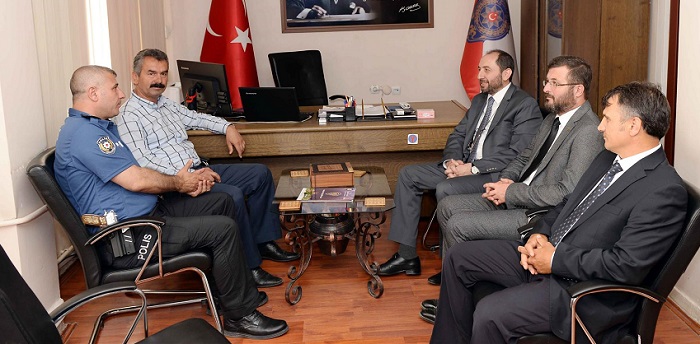 Rektör Prof. Dr. Alkan son olarak, Çorum’da görev yapmakta iken İskilip İlçe Emniyet Müdürlüğü görevine atanan Erol Karasu’yu ziyaret ederek hayırlı olsun dileklerini iletti. Alkan yapmış olduğu ziyarette, “Memleket sevdalısı, ülkesine hizmet etmeyi ibadet olarak addeden ve Çorum’da iken pek çok başarılı çalışmasına şahit olduğumuz Erol Karasu’nun Emniyet Müdürü olarak İskilip ilçemize gelmesi bizim açımızdan çok sevindirici. Kendisine yeni görevinde başarılar diliyorum” dedi. Gerçekleştirilen ziyaretten duyduğu memnuniyeti dile getiren İskilip İlçe Emniyet Müdürü Erol Karasu da nazik ziyaretlerinden dolayı Rektör Alkan’a teşekkürlerini iletti.