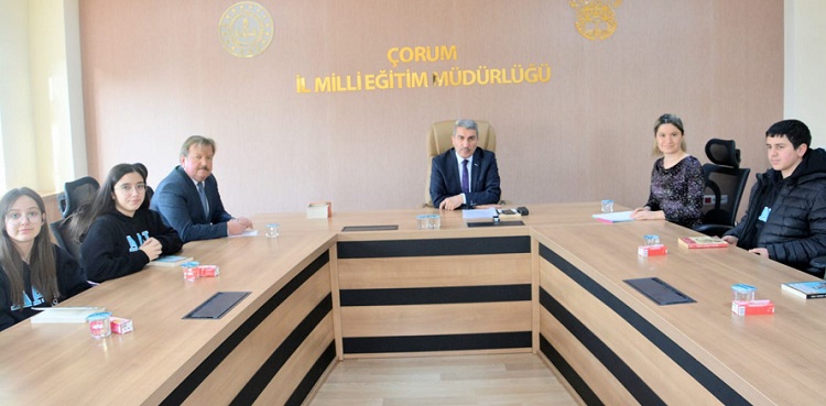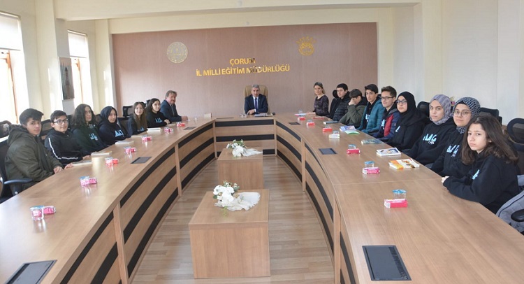 Çorum İl Milli Eğitim Müdürü Yakup Sarı, “Gençlerle Başbaşa” projesi kapsamında bu hafta Çorum Atatürk Anadolu Lisesi öğrencilerini makamında misafir etti. Projenin altınca toplantısında destan döneminden halk hikâyeciliğine geçiş döneminin en önemli ürünü olan “Dede Korkut Hikâyeleri” ele alındı. İl Milli Eğitim Müdürü Sarı ile Atatürk Anadolu Lisesi öğrencileri Dede Korkut Hikayeleri’nin nasıl oluştuğu, hangi dönem özelliklerinin anlatıldığı, hikayelerin yazıya geçirildiği tarih, kaç hikayeden oluştuğu ve dil özellikleri hakkında karşılıklı görüş mütalaa yaptı. Milli Eğitim Müdürü Sarı öğrencilere teşekkür ederek, Ali Fuat Başgil’in “Gençlerle Başbaşa” adlı kitabını hediye etti.