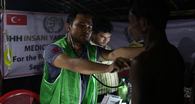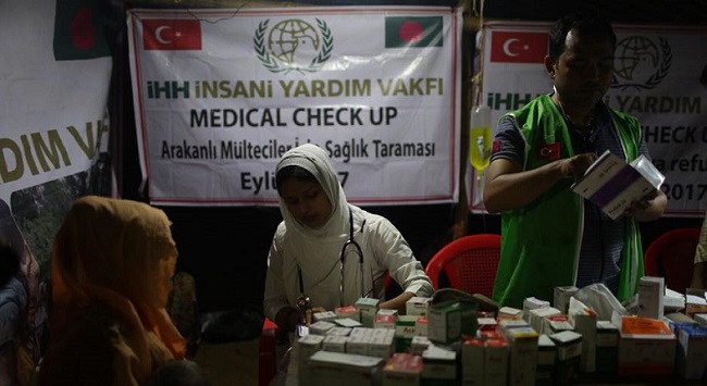 Çorum İHH Başkanı Selim Özkabakçı, İHH bünyesindeki sağlık ekiplernin Arakan sınırındaki kamplarda sağlık çalışmalarına geç saatlere kadar devam ettiğini, başta yaralılar olmak üzere tüm ihtiyaç sahiplerinin ücretsiz muayene olup ilaçlarını alabildiğini bildirdi. Myanmar hükümetinin Arakanlı Müslümanlara uyguladığı soykırımın devam ettiğini bildiren Özkabakçı, “Katliamdan kaçarak nehirleri ve dağları aşmayı başaran Arakanlılar Bangladeş’e sığınıyor ve sıfırdan bir hayat kurmaya çalışıyor. Zulümden kaçmayı başaramayan Arakanlılar ise Myanmar askerinin ve Budist çetelerinin baskısı altında ya ölüme terk ediliyor ya da açlık ve sefaletle yaşamını sürdürmeye çalışıyor. İHH İnsani Yardım Vakfı ise Bangladeş’e göç eden mültecilere yaptığı yardımların yanı sıra Myanmar Arakan içlerine de yardım ulaştırıyor. Bugüne kadar yardım kuruluşlarının girmekte zorlandığı Arakan’ın iç kısımlarına yardım götüren İHH, ilk etapta 3 bin 125 Arakanlıya gıda yardımı ulaştırmayı başardı.” dedi.