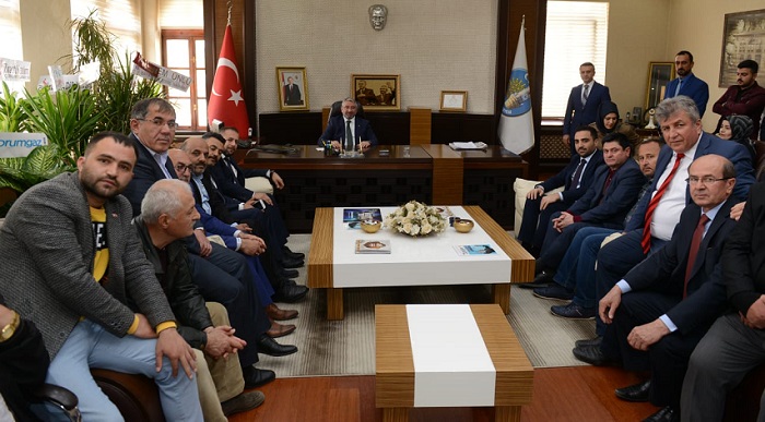 AK Parti Merkez İlçe Başkanı Erhan Akar, merkez ilçe yönetim kurulu üyeleri ve mahalle teşkilat başkanları Belediye Başkanı Dr. Halil İbrahim Aşgın’ı makamında ziyaret etti. Seçim çalışmaları boyunca Dr. Halil İbrahim Aşgın’a destek olmak adına yoğun bir çalışma programı izledikleri belirten AK Parti Merkez İlçe Başkanı Erhan Akar çalışmalarının neticesini aldıklarını belirtti. 15 mahalle başkanının da özveri ile çalıştığını kaydeden Erhan Akar “Seçim çalışmaları süresince gece-gündüz demeden çalıştık. Çorum halkı da üzerine düşeni yaptı ve bize desteğini verdi. Etrafımızdaki illerde oy düşüşü olmasına rağmen Çorum “yeniden AK Parti ile devam” dedi. Çorum halkına teşekkür ediyoruz. Genç ve dinamik bir başkanımız var. Çorum için çok büyük bir kazanç olduğunu düşünüyorum. Projelerini biliyorum. Gerek seçim döneminde gerekse seçim öncesi projelerini anlattı ve projeleri en kısa zamanda hayata geçirecektir. Çorum için neler yapabileceğini bildiğimiz bir insan. Çorum bu manada çok iyi bir başkan kazandı. Bizler teşkilatlar olarak 7 gün 24 saat hizmete hazırız” dedi.