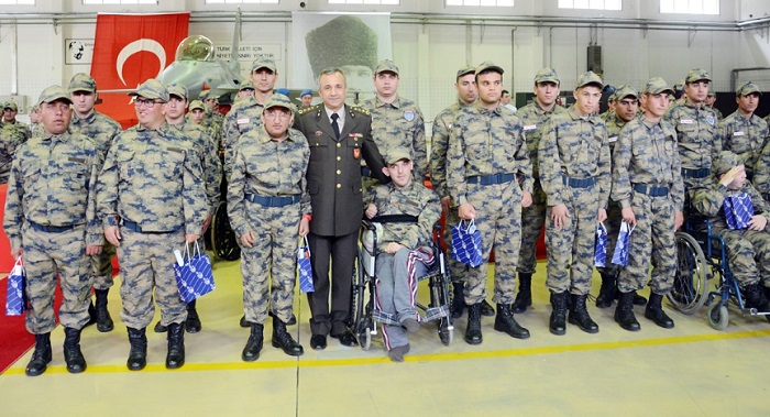 Engelli vatandaşlar bir günlük asker olmanın heyecanını doyasıya yaşadı. Türk Silahlı Kuvvetleri’nin engelli kardeşlerimize yönelik düzenlemiş olduğu temsili askerlik uygulaması Merzifon 5. Ana Jet Üs Komutanlığı’nda gerçekleşti. 1 günlüğüne temsili askerlik görevlerini icra eden engelli vatandaşların mutluluğu yüzlerinden okunuyordu. Alaca Askerlik Şubesi tarafından organize edilen programa başta Alaca olmak üzere Çorum’dan 47 ve Merzifon’dan 10 olmak üzere toplam 57 engelli vatandaşımız temsili askerlik görevlerini Merzifon’da icra ederek “Temsili Terhis Belgesi” aldı. Merzifon 5. Ana Jet Üs Komutanlığı’nda düzenlenen programa Merzifon Kaymakamı Ozan Balcı, Alaca Kaymakamı Ramazan Kurtyemez, 5. Ana Jet Üs Komutanı Hava Pilot Tuğgeneral Rafet Dalkıran, Çorum Asker Alma Bölge Başkanı Personel Albay Şenduran İnan, Alaca Garnizon Komutanı Teğmen Salih Çelik, Belediye Başkanı Muhammet Eyvaz, Merzifon Belediye Başkan Yardımcısı Haydar Köse, AK Parti ilçe Başkanı Ümit Tokgöz, Çorum Şehit Aileleri ve Gaziler Derneği Başkan Yardımcısı Zeki Dilmen, Alaca Askerlik Şubesi Başkanlığı Seferberlik İşlem Uzmanı Mutlu Aydoğdu ve engelli vatandaşların aileleri katıldı.