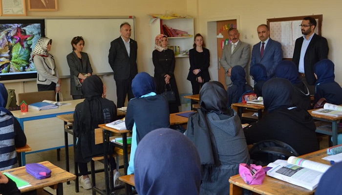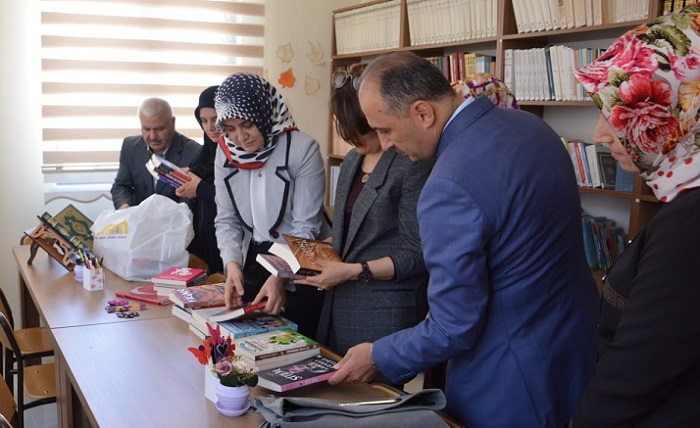Vali Mustafa Çiftçi’nin eşi Azime Çiftçi, Alaca’da bir dizi ziyaretlerde bulundu. Azime Çiftçi, Alaca Özel Eğitim Okulu’nun 4006 Bilim Fuarının açılışına katılarak, öğrenciler tarafından sergilenen eserleri izledikten sonra, bilim fuarı ve gösterilerin hazırlanmasında emeği bulunan tüm idareci, öğretmen, veliler ve öğrencileri tebrik etti. Alaca İlçe Müftülüğüne bağlı Kaleli Yatılı Kız Kur’an Kursunda, Şehidimiz Halil İbrahim Aygül ismini taşıyan kütüphaneyi ziyaret eden Azime Çiftçi, ünlü yazarların şehidimiz adına imzalanan kitapları ve gençlere okuma sevgisini aşılamasıyla tanınan eğitimci yazar Sinan Yağmur’un imzalamış olduğu kitapları kütüphaneye kavuşturmalarından dolayı Emin Kitap Kırtasiye sahibi Yahya İnceyılmaz’a öğrenciler adına teşekkürlerini iletti. Ünlü yazarların imzalı eserlerini kütüphanelerinde görmekten mutluluk duyan öğrenciler, Azime Çiftçi ve Emin Kitap Kırtasiye Sahibi Yahya İnceyılmaz’a teşekkür ederek mutluluklarını ifade etti. İlçe ziyareti kapsamında son olarak Anadolu İmam Hatip Ortaokulunu ziyaret eden Azime Çiftçi, burada öğretmen ve öğrencilerle sohbet ederek okul idarecilerinden bilgiler aldıktan sonra Alaca ilçesinden ayrıldı.