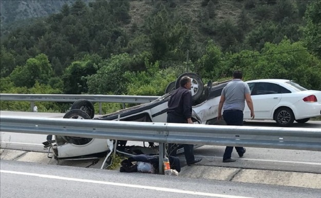 Kargı ilçesi Hacıhamza köyü mevkiinde, sürücünün direksiyon hakimiyetini kaybederek kontrolden çıkan otomobil bariyerlere çarparak takla attı. Kazada otomobil sürücüsü ile birlikte bir kişi yaralandı. Edinilen bilgiye göre; İstanbul istikametinden Osmancık istikametine gitmekte olan otomobil sürücüs direksiyon hakimiyetini kaybederek bariyerlere çarparak takla attı. Çarpmanın etkisiyle takla atan otomobil içerisinde bulunan H.C. ve A.U. isimli iki kişi yaralandı. Yaralılar Osmancık İlçe Devlet Hastanesine kaldırıldı. Tedavi altına alınan yaralıların hayati tehlikesinin bulunmadığı öğrenildi.