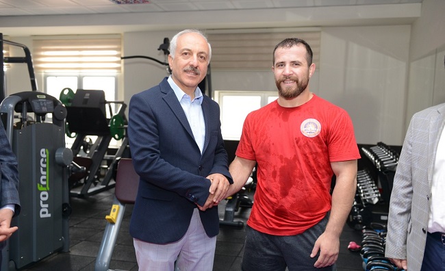 Belediye Başkanı Zeki Gül, Çorum Belediyespor Kulübü Güreş Takımının Mevlana Spor Salonunda yaptığı antrenmanı izledi. Milli güreşçimiz Fatih Erdin’in ülkemizi temsil edeceği 20-29 Ekim tarihlerinde Macaristan Budapeşte’de yapılacak olan Büyükler Dünya Güreş Şampiyonası öncesi antrenman çalışmalarını izleyen Başkan Gül, “Türkiye Serbest Güreş Milli Takımımızda 86 Kiloda Türkiye’yi temsil edip milli takım formasını giyecek olan Fatih Erdin’i hem ziyaret etmek hem de tebrik etmek için geldik. Belediyespor kulüp tarihimizde ve Çorum’un güreş tarihinde Çorum’da lisanslı spor yaparak Türkiye’yi Dünya Şampiyonasında milli takım formasıyla temsil edecek ilk güreşçimiz olması asabiyle de Fatih’i tebrik ediyorum. Hocalarını ve burada birlikte antrenman yapan bütün arkadaşlarına başarılarının devamını diliyorum” dedi.