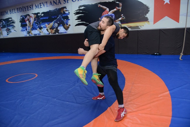 Belediye Başkanı Zeki Gül, Çorum Belediyespor Kulübü Güreş Takımının Mevlana Spor Salonunda yaptığı antrenmanı izledi. Milli güreşçimiz Fatih Erdin’in ülkemizi temsil edeceği 20-29 Ekim tarihlerinde Macaristan Budapeşte’de yapılacak olan Büyükler Dünya Güreş Şampiyonası öncesi antrenman çalışmalarını izleyen Başkan Gül, “Türkiye Serbest Güreş Milli Takımımızda 86 Kiloda Türkiye’yi temsil edip milli takım formasını giyecek olan Fatih Erdin’i hem ziyaret etmek hem de tebrik etmek için geldik. Belediyespor kulüp tarihimizde ve Çorum’un güreş tarihinde Çorum’da lisanslı spor yaparak Türkiye’yi Dünya Şampiyonasında milli takım formasıyla temsil edecek ilk güreşçimiz olması asabiyle de Fatih’i tebrik ediyorum. Hocalarını ve burada birlikte antrenman yapan bütün arkadaşlarına başarılarının devamını diliyorum” dedi.