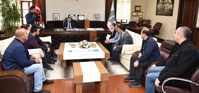 Çorum Sebzeciler ve Pazarcılar Odası Başkanı Erdoğan Yılmaz, oda üyeleriyle birlikte Belediye Başkanı Muzaffer Külcü’yü ziyaret etti. Pazarcılar olarak her zaman Belediyenin almış olduğu kararların yanında olduklarını ifade eden Erdoğan Yılmaz, yapılan çalışmalar nedeniyle Başkan Külcü’ye teşekkür etti. Yılmaz, “Yaptığınız Pazar yerlerinden dolayı, pazarcı esnafına desteklerinizden dolayı çok teşekkür ediyoruz. Biz sizlerden çok memnunuz. Her zaman bizim destekçimiz oldunuz.” diye konuştu. Ziyaretten duyduğu memnuniyeti dile getiren Belediye Başkanı Muzaffer Külcü, her zaman esnafın yanında yer aldıklarını, esnafa yönelik yapılan çalışmalarla tüm esnaf kesiminin görüşlerini aldıklarını söyledi. Külcü, “Zaman zaman itilaflar yaşamış olsak bile hamdolsun bunları kalıcı bir problem haline getirmeden odalarımızla belediyemiz sürekli müşterek noktayı yakaladık ve oradan sonuca ulaştık. Bundan sonrada böyle itilaflar olacak ama karşılıklı anlayış içerisinde ve birbirimize yardımcı olarak bunları da aşacağız. Son olarak Çarşamba pazarının yerinin değişmesi hadisesini yaşadık. Bundan olumsuz etkilenen pazarcı esnaflarımız oldu. Sonrasında Belediye olarak daha güzel daha modern bir pazar yeri yapacağımızı söyledik ve belediyemize duyulan güven neticesinde pazarcı esnafımız da tamam dedi. Şimdi biz sözümüzün gereğini yerine getiriyoruz. Modern bir pazar yeri için proje çalışmalarını başlattık” dedi.
