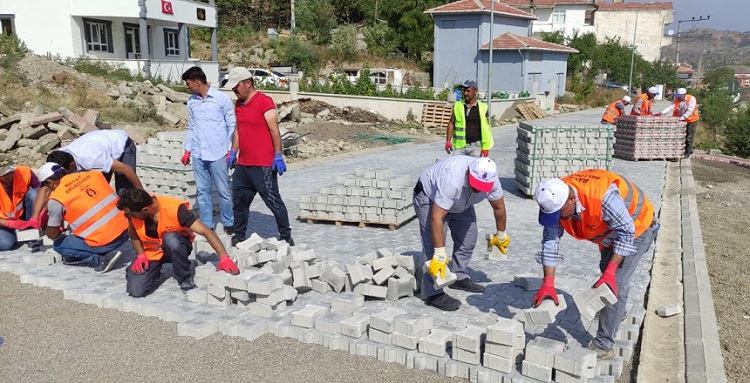 Bayat Belediye Başkanı Ekrem Ünlü, kilitli parke taşı döşeme çalışmalarını yerinde inceledi.