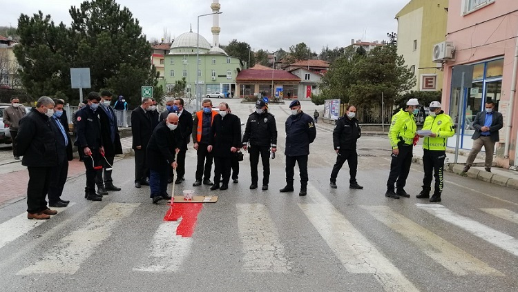Çorum’un Bayat ilçesinde İçişleri Bakanlığı’nın “Kırmızı Çizgi” uygulaması kapsamında farkındalık programı düzenlendi. Bayat Belediye Başkanı Ekrüm Ünlü ve ilçe yetkilileri ve ‘Yayalar Kırmızı Çizgimizdir’ kampanyasına destek verdi. Trafikte yaya önceliğine dikkat çekmek için gerçekleştirilen “Yayalar Kırmızı Çizgimizdir” kampanyası kapsamında, trafikte yayalara öncelik verilmesi için yaya yoluna kırmızı çizgi çizildi.