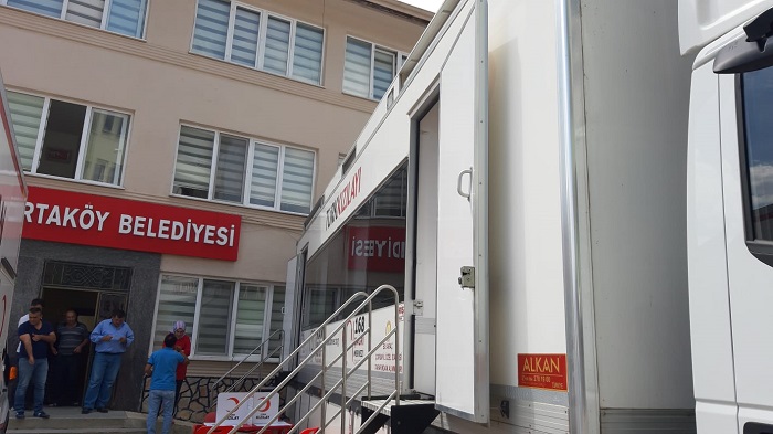 Gezici Kan Bağışı aracı Ortaköy İlçesinde gönüllü olarak kan bağışında bulunmak isteyen vatandaşlardan kan aldı.
