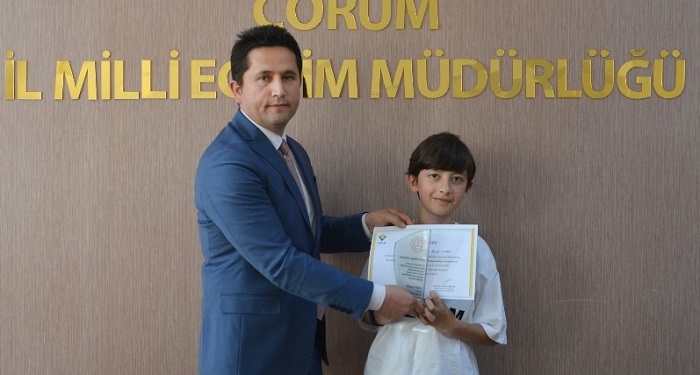 Çorum İl Milli Eğitim Müdürü Yahya Çoban, TÜBİTAK Ortaokul ve Lise Öğrencileri Araştırma Projesi kapsamında kentte dereceye giren ve katılımda bulunan Bilim ve Sanat Merkezi öğrencilerine ödüllerini takdim etti. Başarılı öğrencileri kabulünde konuşan Çoban, “Günümüzde hayatımızın büyük oranda bilimsel ve teknolojik bir içerikle örüldüğü ve bu içeriğin doğru algılanabilmesinin ve değerlendirilmesinin bilimsel bir altyapı gerektirdiği açıktır. TÜBİTAK Bilim Projeleri, öğrencilerin bireysel ilgileri doğrultusunda seçtikleri konuları inceleyerek hazırladıkları projelerle, bilimsel araştırma süreçlerini yaşayarak öğrendikleri, etkinliklerdir. Öğrencileriniz bu etkinliklerin planlanması, hazırlanması ve gerçekleştirilmesi aşamalarında eleştirel düşünme, zaman yönetimi, problem çözme, yazılı ve sözlü sunum ile bilimsel araştırma becerilerini geliştirecek, sabırlı ve özgüvenli olmayı öğrenerek, liderlik vasıflarını kazanıyorlar. TÜBİTAK Ortaokul ve Lise Öğrencileri Araştırma Projesine ilimizden katılan, dereceye giren öğrencilerimize, öğretmenlerimize ve yöneticilerimize teşekkür ediyorum.” dedi. 25-28 Şubat tarihleri arasında Samsun’da yapılan bölge finalinde Lise Öğrencileri Araştırma Projesi Yarışmasına katılan “Arı Ekmeğinin Drosophila Melanogaster’in Yaşamsal Parametleri Üzerine Etkisi” projesi ikinci olurken, Ortaokul Öğrencileri Araştırma Projeleri Yarışmasına katılan bir proje birinci, bir diğer proje ise bölge üçüncüsü oldu.