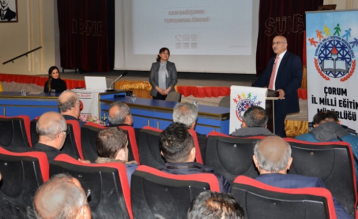 Çorum İl Milli Eğitim Müdürlüğü ve Kızılay işbirliğinde hazırlanan Bu Kan Seni Unutur Mu? Projesi tanıtım toplantısı Şehit Emin Güner Mesleki ve Teknik Anadolu Lisesi Konferans Salonunda yapıldı. Okul müdürleri, öğretmenler ve Kızılay Çorum Şubesi yetkililerinin katıldığı toplantıda konuşan İl Milli Eğitim Müdürü Seyit Ali Büyük kan bağışının her zaman yapılması gereken bir alışkanlık haline gelmesinin önemini belirterek: “Kan bağışı hem insanlara faydalı olmak hem de sağlıklı olmak demektir. Kan her zaman ihtiyaçtır. Kan bağışlayarak üç kişiye hayat vermiş oluyoruz. Milli Eğitim camiası olarak öğretmen ve öğrencilerimizle bu bilinçte olmamız gerekiyor. Öğrencilerimizin geleceğin bağışçısı olmaları için çalışıyoruz.” dedi. Konya Kızılay Kan Bağış Merkezinden Özlem Arslan Kuru yaptığı sunumda: ”Kanın muadili yok. Kan bağışının sosyal sorumluluk olduğu bilincini oluşturmalıyız. Kan bağışı hepimiz için bir görevdir. Kan bağışlayarak üç kişiye hayat verme duygusunu herkesin yaşamasını istiyoruz.” diyerek kan bağışının toplumsal önemini anlattı. Bu Kan Seni Unutur Mu? Projesi ile eğitimin tüm kademelerinde kan bağışının önemi anlatılarak, kan bağışının sosyal sorumluluk haline getirilmesini ve kan ihtiyacının bilinçli, karşılık beklemeden gönüllülük esasına dayalı bir şekilde karşılanması amaçlanıyor.