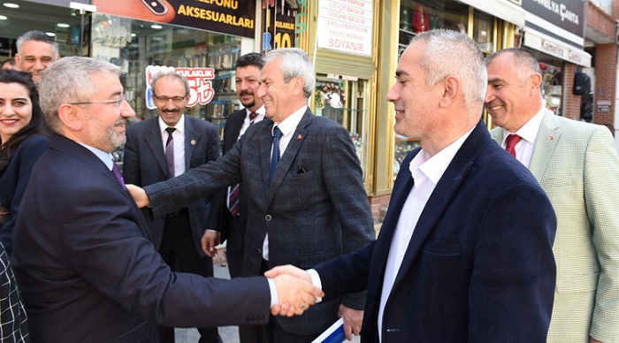 CHP İl Başkanı Hasan Eray Tüfekçi, Merkez İlçe Başkanı İsmail Kalender, İl genel Meclisi CHP Üyeleri, Belediye Meclisi CHP Üyeleri ile birlikte Belediye Başkanı Dr. Halil İbrahim Aşgın’a hayırlı olsun ziyaretinde bulundu. CHP olarak 13 Meclis üyesi ile Çorum’a hizmet etmeye devam edeceklerini ifade eden CHP İl Başkanı Hasan Eray Tüfekçi, “31 Mart yerel seçimlerini geride bıraktık bunun memleketimiz, Çorum’umuz ve sizin adınıza hayırlı olmasını diliyorum. Bundan sonra da bizim sizden isteğimiz Çorum’un 15 mahallesine de eşit hizmet götürmeniz. Bu doğrultuda Çorum’un faydasına olacağına inandığımız her konuda CHP olarak elimizi taşın altına koymaya hazırız” dedi ve hayırlı olsun dileklerinde bulundu. Bu yola çıkarken hizmette ayrımcılık yapmayacaklarını beyan ettiklerini ifade eden Belediye Başkanı Dr. Halil İbrahim Aşgın, “Bizim için 15 Mahallemiz birbirine eşittir. Ben seçim sonrası mahalle mahalle oy oranlarına bakmak istemedim ve bakmadım. Bize oy vermiş vermemiş ayrımı gütmedim bundan sonra da olmayacağını beyan ediyorum. Çorum’umuzun faydasına olacak işlerde CHP olarak elinizi taşın altına koyacağınızı söylediniz, ben de; şehrimizin faydasına olmayacak bir iş yapmayacağımızı ifade etmek isterim. Yola çıkarken “Ali” olmak için çıktık. Burada ‘a’ adalet, ‘l’ liyakat, ‘i’ ise istişare anlamına geliyor ve inşallah “Ali” olacağız. Nazik ziyaretleriniz için teşekkür ediyorum” dedi.