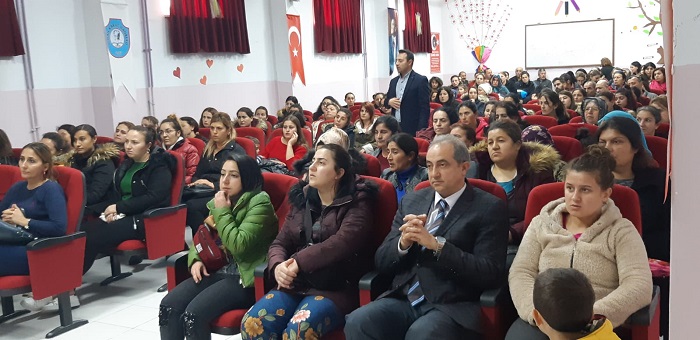 İsmail Kakaç İlkokulu’nda eğitim semineri yapıldı. Seminerde Okul Müdürü Ender Özcan Özçakır açılış konuşmasını yaptı. Özçakır, “ Ayrım gözetmeksizin tüm çocukların sağlık, beslenme, eğitim ve yaşam hakkı gibi temel haklarının olduğunu ifade ederken aynı zamanda çocuk ihmalinin ve istismarının engellenmesi konusunda yetişkinlere önemli görevler düştüğünü ifade etti. Okul Rehberlik Öğretmeni Caner Turan, yaşadığımız dünyada çocukların temel sorunları arasında göç, savaş ve cinsel istismar olduğunu vurgulayarak yetişkinlerin bu konuda önemli görevleri olduğunu vurguladı. Çocuk Hakları Sözleşmesi ve Çocukların Temel Haklarına değinen Turan, “Çocuğa Yönelik Kötü Muamele, Risk Faktörleri, Kötü Muameleye Maruz Kalan Çocuklarda Gözlemlenen Davranışlar” konularında sunumunu devam ettirdi. Rehberlik Öğretmeni Nur Kalaycı Tengiz, çocukları korumak için ebeveynlerin en önemli görevinin bilinçlendirmek ve doğru bilgiyi zamanında ve uygun dille aktarmak olduğunu dile getirerek ailelere düşen görev sorumlulukları anlattı. Tengiz, özellikle cinsel istismarla ilgili hatalı varsayımlarımızın çocuklar için risk oluşturduğunu vurguladı.Seminer sonunda söz alan Okul Müdürü Ender Özcan Özçakır, gerçekleştirdikleri sunumdan dolayı rehberlik öğretmenlerine teşekkür ederek onlara çiçek takdim etti.