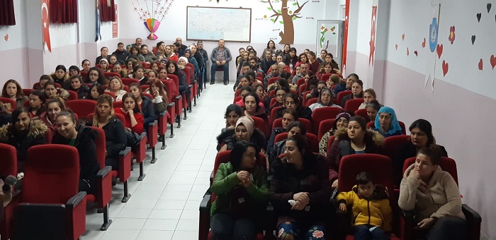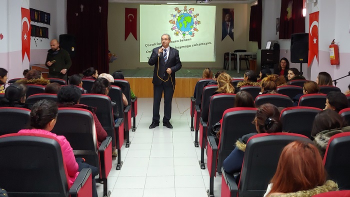 İsmail Kakaç İlkokulu’nda eğitim semineri yapıldı. Seminerde Okul Müdürü Ender Özcan Özçakır açılış konuşmasını yaptı. Özçakır, “ Ayrım gözetmeksizin tüm çocukların sağlık, beslenme, eğitim ve yaşam hakkı gibi temel haklarının olduğunu ifade ederken aynı zamanda çocuk ihmalinin ve istismarının engellenmesi konusunda yetişkinlere önemli görevler düştüğünü ifade etti. Okul Rehberlik Öğretmeni Caner Turan, yaşadığımız dünyada çocukların temel sorunları arasında göç, savaş ve cinsel istismar olduğunu vurgulayarak yetişkinlerin bu konuda önemli görevleri olduğunu vurguladı. Çocuk Hakları Sözleşmesi ve Çocukların Temel Haklarına değinen Turan, “Çocuğa Yönelik Kötü Muamele, Risk Faktörleri, Kötü Muameleye Maruz Kalan Çocuklarda Gözlemlenen Davranışlar” konularında sunumunu devam ettirdi. Rehberlik Öğretmeni Nur Kalaycı Tengiz, çocukları korumak için ebeveynlerin en önemli görevinin bilinçlendirmek ve doğru bilgiyi zamanında ve uygun dille aktarmak olduğunu dile getirerek ailelere düşen görev sorumlulukları anlattı. Tengiz, özellikle cinsel istismarla ilgili hatalı varsayımlarımızın çocuklar için risk oluşturduğunu vurguladı.Seminer sonunda söz alan Okul Müdürü Ender Özcan Özçakır, gerçekleştirdikleri sunumdan dolayı rehberlik öğretmenlerine teşekkür ederek onlara çiçek takdim etti.