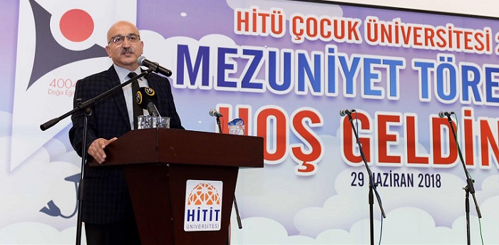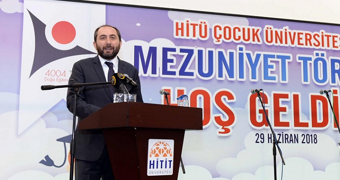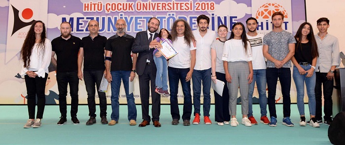 Hitit Üniversitesi tarafından bu yıl üçüncüsü TÜBİTAK 4004 Doğa Eğitimi ve Bilim Okulları Programları kapsamında düzenlenen HİTÜ Çocuk Üniversitesi 2018’in mezuniyet töreni coşkuyla gerçekleştirildi. Her geçen yıl içeriğinde yapılan farklılıklar ve görev alan çok sayıdaki öğretim elemanları ile geniş eğitim yelpazesine ulaşan HİTÜ Çocuk Üniversitesi 2018’de 100 öğrenci düzenlenen mezuniyet töreninde diploma alarak kep atma heyecanını yaşadı. Törene Rektör Prof. Dr. Reha Metin Alkan, İl Milli Eğitim Müdürü Seyit Ali Büyük, Rektör Yardımcıları Prof. Dr. Nurcan Baykam ve Prof. Dr. Mustafa Bıyık, Üniversite öğretim elemanları, öğrencilerin velileri ve HİTÜ Çocuk Üniversitesi öğrencileri katıldı.