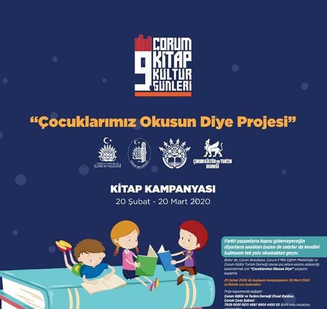 Çorum Kültür Turizm Derneği, örnek bir projeye imza atıyor. Dernek, bu yıl 9.su gerçekleştirilecek olan Kitap Fuarında “Çocuklarımız Okusun Diye” projesini hayata geçirecek. Çorum Kültür Turizm Derneği’nin şehrin kültürüne, sosyal hayatına ve turizm çalışmalarına yönelik projeler ürettiğini belirten Dernek Yönetimi, Çorum’u tüm yönleriyle ön plana çıkarmak istediklerini, Çorum’u daha çok tanıtıp, şehrin kültürden, eğitimden, turizmden ve diğer tüm hizmet alanlarından en yüksek düzeyde faydalanmasını istiyoruz. Derneğimiz, kurulalı çok fazla bir süre geçmemesine rağmen önemli projeleri hayata geçirdik. İnşallah Kitap Fuarıyla birlikte hayata geçireceğimiz projemizle de gençlerimize, öğrencilerimize dokunacağız. Onlara kitap okuma alışkanlığı kazandıracak, kitap okumayı teşvik edeceğiz.” dedi. Proje hakkında da açıklamalarda bulunan Dernek yönetimi, projeye Çorum halkının desteklerini beklediklerinin altını çizdi. “Projemiz, hayırsever Çorum halkının ve kitapsever insanlarımızın destekleriyle hayata geçecek. Bağış yapmak isteyen vatandaşlarımızın yaptıkları bağışlar öğrencilerimize kitap kuponu olarak iletilecek. Toplanan gelirler, 10’ar TL’lik kitap kuponları halinde İl Milli Eğitim Müdürlüğümüze teslim edilecek. Müdürlüğümüz de bu kuponları Çorum’umuzda eğitim gören öğrencilerimize ulaştıracak. Bu kuponlarla öğrencilerimiz Ticaret Sanayi Odasında düzenlenecek kitap fuarında dilediği yayınevinden kitaplarını alabilecekler” diye konuştu.