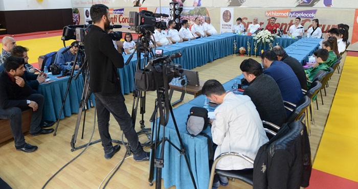 Çorum Belediyesi son yıllarda spora yaptığı yatırımlarla da adından sıkça söz ettiriyor. Belediye Başkanı Muzaffer Külcü, her ay bir müdürlüğün faaliyetlerini anlattığı basın toplantılarına bir yenisini daha ekledi. Başkan Külcü, bugün de Belediye Spor İşleri Müdürlüğü faaliyetleriyle ilgili basın toplantısı düzenledi. Mevlana Spor Salonu’ndaki toplantıya Belediye Başkan Yardımcısı Zeki Gül, Spor İşleri Müdürü Nadir Solak, Belediyespor Kulübü yöneticileri, Antrenörler ve sporcular katıldı. Sporun insan hayatındaki öneminden bahseden Başkan Külcü, Avrupa’da her 3 kişiden birinin, İskandinavya ülkelerinden her 3 kişiden 2’sinin, Türkiye’de ise her 5 kişiden birinin spor yaptığını açıkladı. Sporun ülkelerin, kentlerin tanıtımındaki önemine değinen Başkan Külcü, sporun ekonomik açıdan da çok önemli bir sektör olduğunu, kent olarak bundan fay almak için spor vizyonlarının olması gerektiğine vurgu yaptı. Başarılı olabilmenin önemli bir ayağının da tesisleşme olduğunu söyleyen Başkan Külcü, 2002 yılındaki spor tesisi ile 2016 yılı arasında kıyaslama yaparak, bu alanda 3 katı bir büyümenin olduğunu hatırlattı. 2002 yılında spor yatırımlarına ayrılan pay 63 milyon iken, 2016 yılı sonunda 25 katı artırılarak 1,5 milyar TL’ye çıkarıldığını kaydeden Başkan Külcü, son 10 yıl içerisinde uluslararası organizasyon sayısında da çok ciddi artışlar olduğunu dile getirdi.