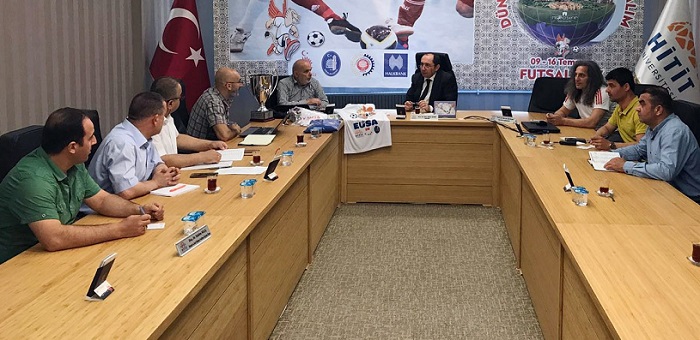 Hitit Üniversitesi ev sahipliğinde 9-17 Temmuz tarihleri arasında gerçekleştirilecek olan 11. Avrupa Üniversiteler Futsal Şampiyonası (Futsal’2017) öncesi hazırlıklar tamamlandı. Hitit Üniversitesi Rektörü Prof. Dr. Reha Metin Alkan başkanlığında BESYO Müdürü Prof. Dr. Faruk Yamaner, Güvenlik Şube Müdürü Cemil Sağlam’ın Sağlık, Kültür ve Spor,Bilgi İşlem İdari ve Mali İşler Daire Başkanları, Basın ve Halkla İlişkiler Koordinatörlüğü’nün katılımlarıyla yapılan değerlendirme toplantısında şampiyona sürecinde yapılacak olan çalışmalar masaya yatırıldı.
