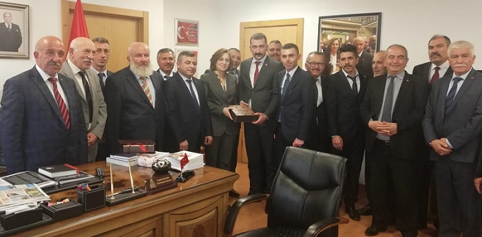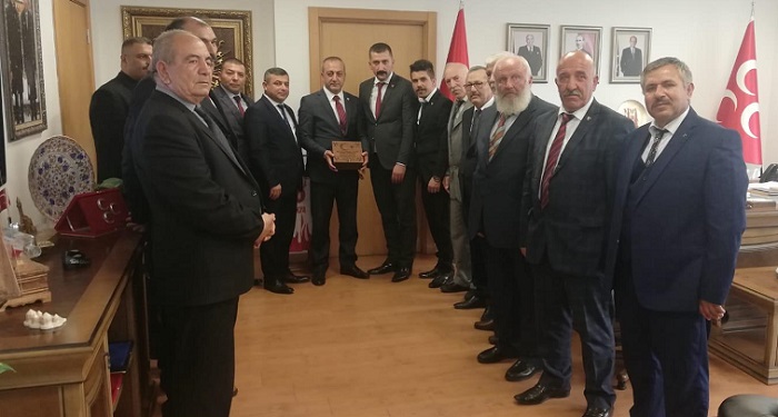 Milliyetçi Hareket Partisi Çorum İl Başkanı Arslan Kaynar, Merkez İlçe Başkanı Ertuğrul Onan ve ilçe başkanları, MHP Genel Başkanı Devlet Bahçeli’yi Ankara’da ziyaret etti. TBMM’de düzenlenen MHP Grup Toplantısı’na katılan teşkilat yöneticileri, MHP Genel Merkezi’nde Genel Başkan Devlet Bahçeli’yi makamında ziyaret ettiler. İl başkanı ve İlçe başkanları daha sonra Genel Başkan Yardımcıları ve Divan Heyeti üyelerini ziyaret ettiler. MHP İl Başkanı Arslan Kaynar yaptığı açıklamada, “İlçe başkanlarımızla birlikte TBMM MHP Grup toplantısına katıldık. Daha sonra genel merkezimizde muhterem Genel Başkanımız Sayın Devlet Bahçeli’yi ziyaret ederek çalışmalarımızı ve şehrimiz hakkında bilgilerimizi sunduk, emir ve talimatlarını aldık. Liderimiz tüm ülküdaşlarımıza ve hemşehrilerimize selamlarını gönderdi. Daha sonra teşkilat birimlerimizi ziyaret ettik. Genel Başkan Yardımcılarımızı ve Divan heyeti üyelerimizi ziyaret ederek bilgi alışverişinde bulunduk. Yerel seçimlerle ilgili hazırlıklarımızı değerlendirdik” ifadelerini dile getirdi.