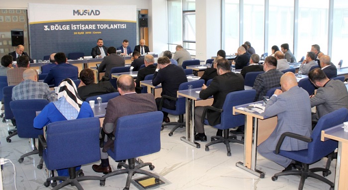 MÜSİAD 3. Bölge İstişare Toplantısı Çorum’da yapıldı. Çorum MÜSİAD’ın ev sahipliğinde, TSO toplantı salonunda gerçekleştirilen toplantıya MÜSİAD Yerel Üst Kurulu Başkanı Ahmet Şekerli, MÜSİAD Üye İlişkileri Komitesi Başkanı Faruk İbrahim Özbek, MÜSİAD Yerelde Sektörel Üye Geliştirme Komitesi Başkanı Fatih Mehmet Keçebir, MÜSİAD Yerel 3. Bölge Sorumlusu Ömer Lütfi Soylu, MÜSİAD Genel Sekreteri Kadir Abalı, Çorum MÜSİAD Başkanı Orhan Coşkun, Çorum Genç MÜSİAD Başkanı Emre Çıtak, Çorum MÜSİAD üyeleri ve 15 İlin MÜSİAD Başkanları ve yardımcıları katıldı. Toplantının açılışında bir konuşma yapan Çorum MÜSİAD Başkanı Orhan Coşkun, katılımcılara Çorum’da gerçekleştirdikleri faaliyetler hakkında bilgiler verdi. Coşkun’un yaptığı açılış konuşmasının ardından ise MÜSİAD’ın şuan da 11 Bin üye ile ülke ekonomisine ve iş dünyasına katkısı değerlendirildi.