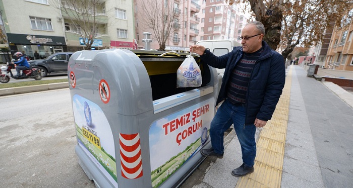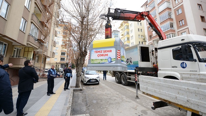 Çorum’da temizlik alanında yeni çalışmalar yaptıklarını belirten Belediye Başkanı Muzaffer Külcü, yeni ve modern konteynırları kullanıma sunduklarını söyledi. Aldıkları 3750 lt kapasiteli konteynırları ilk olarak Fatih Caddesi’ne yerleştirildiğini dile getiren Başkan Külcü, “Bu çalışma ile önceden 5 konteynırın aldığı evsel atığı yeni yerleştirdiğimiz 1 tane konteyner alacak. Yeni konteynır sistemi ile evler, işyerleri, pazarlar, alışveriş merkezleri gibi evsel katı atıkların yoğun olduğu bölgelerde hem gürültü kirliği ortadan kalkacak hem de daha pratik ve modern bir hizmet vermiş olacağız. Yine mevcutta bulunan konteynırlar çöp atarken ve araçlar alırken çok ses çıkartıyordu. Bu yeni sistemle gürültü kirliliğini de ortadan kaldırmış olacağız. Ayrıca işletme maliyetlerinin düşürülmesi, günümüz gelişen teknoloji ve estetiğine uyum sağlanması açısından da bu çalışmayı önemsiyoruz” dedi.