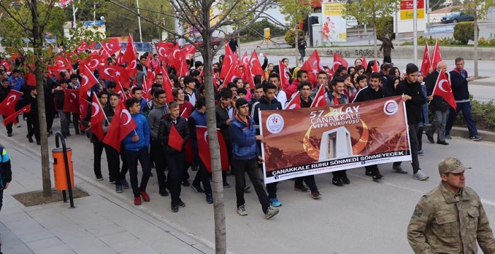 Çorum’da “57. Alay Çanakkale Vefa Yürüyüşü” düzenlendi. Pirbaba’dan başlayan yürüyüş Garnizon Şehitliğinde son buldu. Törene, Vali Necmeddin Kılıç, Belediye Başkanı Muzaffer Külcü, gaziler, daire müdürleri, askerler, öğretmen ve öğrenciler katıldı.Törende konuşan Belediye Başkanı Muzaffer Külcü, dünü olmayanın yarını olmayacağını belirterek, şehitliğin önemine vurgu yaptı. Vali Necmeddin Kılıç da, Gazi Mustafa Kemal’in eğittiği 57. Alayın zorluk, imkansızlıklar içerinde neredeyse dünyanın tamamına karşı verdiği mücadeleye dikkat çekti. Konuşmaların ardından da Garnizon Şehitliği’ne kadar yürüyüş düzenlendi. Yürüyüşten sonra Vali Necmeddin Kılıç, Belediyle Başkanı Muzaffer Külcü ve diğer katılımcılar, şehit mezarlarına çiçek bırakarak, okunan Kur’anı Kerim eşliğinde dua ettiler.