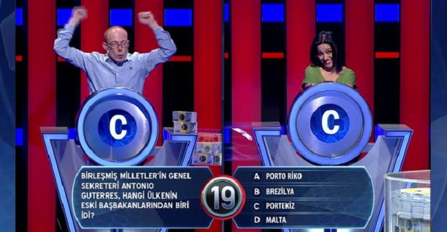 Kanal D ekranlarında yayınlanan ve ünlü oyuncu Barış Kılıç’ın sunduğu ‘19’ adlı bilgi yarışmasında rakiplerini tek tek eleyen Çorumlu yarışmacı Çağlar Patır büyük bir rekora imza attı. Yöneltilen 19 soru sonunda rakibiyle berabere kalan Çağlar Patır, uzatma bölümündeki soruyu da doğru cevaplayarak 800 bin liranın sahibi oldu ve 900 bin lira için yarışmaya hak kazandı.