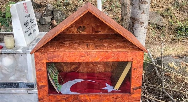 Çorum’un Oğuzlar İlçesinde lise 4. sınıfa giden 18 yaşındaki Yılmaz Eren, ilçede bulunan iki şehidin mezarına örnek bir proje yaparak takdir topladı. Oğuzlar Anadolu Lise 4. sınıf öğrencisi Yılmaz Eren, ilçede bulunan iki şehit mezarının başına içerisinde Kur’anı Kerim, Yasin-i Şerif ve Türk Bayrağı bulunan suya ve sıcağa dayanıklı özel bir kabin yaptı. Türkiye genelinde örnek olabilecek bir çalışmaya imza atan genç, projenin amacını “İnsanların şehitlerimizi ziyaret ederek onların adlarına Yasin, Kuran ve dua okumalarını sağlamak” sözleriyle açıkladı. Çorumlu Yılmaz Eren, şehit yakını olmadığını hatırlatırken “Şehitlere vefa borcumun olduğunu düşünüyorum. Ondan dolayı böyle bir proje başlattım ve Türkiye geneline yaymak için çalışacağım” dedi.