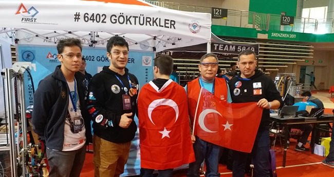 Çorumlu hemşerimiz Adem Beker’in okul müdürü olarak görev yaptığı İstanbul Kartal’daki Atalar Mesleki ve Teknik Anadolu Lisesi’nin Göktürkler Robot Takımı, tasarladıkları robotlarla uluslararası yarışmalara katılıyor. Geçen yıl ABD’nin New York eyaletinde Columbia Üniversitesindeki FRC Robot Yarışmasında Türkiye’yi temsil eden robot takımı, ‘Yılın İlham Veren Takımı Ödülü’nü kazanmıştı. Bu yıl Göktürkler Robot Takımı Çin’de Shenzen Üniversitesinde yapılan yarışmaya katıldı. Çin’deki 2018 FRC Robot Yarışması’na, ağır bir nesneyi teraziye koyan ve geri çeken kaldırma robotu ‘Göktürk’ ile katılan liseliler, birbirleriyle uyumları ve dayanışmaları nedeniyle ‘En İyi Takım Ruhu’ ödülünü aldı Okul Müdürü Adem Beker, yaptığı açıklamada, Afrin Kartalları sloganıyla bu yılki çalışmalarımıza başladıklarını, anlattı. Beker, “Takım üyesi öğrencileri planlama, tanıtım, mekanik, sponsorluk görüşmeleri, ekip koordinasyonu ve teknik açıdan görevlendirdik. Öğrencilerin yaratıcılıklarını geliştiren, özgüvenlerini arttıran, birlikte iş yapma ve bilgi paylaşma becerilerini geliştirerek bilimle uğraşarak neler kazanabileceklerini bir kez daha anladık. Öğrenciler kendilerini olağanüstü bir gayretle geliştirdi ve üretim aşamasında dünyadaki gelişmeleri takip ettiler. Bir kutuyu tartılması için yukarı kaldırarak teraziye koyan robotu altı haftada tamamladık. Alüminyum gövdeye, dişliler ve zincir sistemi yaptık. Mikro denetleyiciler, motor sürücüler ekledik. Yazılımı tüm dünyada kullanılan Labview yazılımıydı. Ürettikleri robotla yarışmaya katılmak için ilk defa yurt dışına çıkacak öğretmen ve öğrencilerimizin heyecanına ortak olduk. ABD’den sonra bu kez de Çin’de ay yıldızlı bayrak altında İstiklal Marşımızı söyleyerek ülkemizi temsil etmenin büyük onurunu gururunu yaşadık.” dedi.