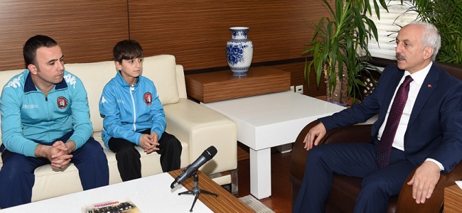 Lüksemburg’da düzenlenen Euokids Avrupa Seçmelerine katılan Çorum Belediyesi Gençlik ve Spor Kulübü Başkanı Nadir Solak, Çorum Belediyesi Gençlik ve Spor Kulübü Genel Sekreteri ve Masa Tenisi Branşı Sorumlusu Ömer Faruk Yetim, Masa Tenisi Antrenörü Ali Korkmaz ve sporcu Uğurcan Dursun, Belediye Başkanı Zeki Gül’ü makamında ziyaret etti. Belediye Başkanı Zeki Gül’e elde edilen başarı hakkında bilgi veren antrenör Ali Korkmaz, büyük bir başarı kazandıklarını ve bunun bir ilk olduğunu ifade etti. “Eğer bize böyle bir destek verilmeseydi böyle bir başarıyı yakalayamazdık. Tarihte ender anlardan birini yaşadık. Sporcumuz Avrupa kıtasında hem ülkemizi hem de kulübümüzü temsil edecek. Sporcumuzun elde ettiği başarıdan dolayı gururluyuz. Belediye Başkanımız Zeki Gül’e vermiş olduğu desteklerden dolayı teşekkür ediyoruz” dedi.