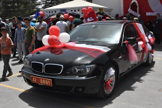 Şehit Yunus Emre Uçar’ın 3 yaşındaki oğlunun sünnet düğünü için Konya Valisi Çorumlu hemşerimiz Yakup Canbolat makam aracını tahsis etti. Hakkari’nin Çukurca ilçesinde terör örgütü PKK’ya yönelik operasyonda şehit olan Piyade Uzman Onbaşı Yunus Emre Uçar’ın 3 yaşındaki oğlunun Konya’daki sünnet düğünü sosyal medyadan yapılan çağrılar sonucu yüzlerce vatandaşın katılımıyla gerçekleştirildi. Sünnet kıyafetlerini giyen Uçar için Konya Valisi Çorumlu hemşerimiz Yakup Canbolat makam aracını tahsis etti. Polis ekiplerinin sirenlerini açarak eskortluk ettiği konvoy, Ladik Mahallesi’nde bir süre tur attı. Muhammed Emin’i çok sayıda vatandaş ziyaret ederek çeşitli hediyeler verdi, fotoğraf çektirdi.