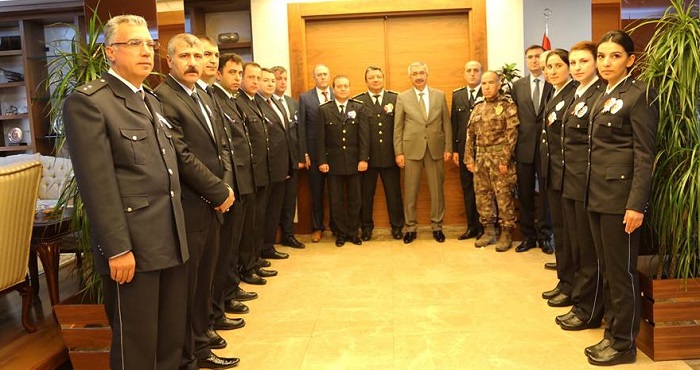 Polis Teşkilatı’nın 172. kuruluş yıldönümünü nedeniyle Emniyet Müdürü Murat Kolcu ve teşkilat mensupları Vali Necmeddin Kılıç’ı makamında ziyaret etti. Ziyarete gelen tüm polis teşkilatını tek tek kutlayan Vali Kılıç’a günün anısına bayan polis memuru tarafından çiçek takdim edildi. Polis Teşkilatının Polis Günü’nü kutlayan Vali Necmeddin Kılıç, Türkiye’de kurumların devletin belkemiği olduğunu ifade etti. Kurumların içinde tarihi binlerce yıl geriye gidenler olduğu gibi polis teşkilatının 172. Kuruluş yıldönümünü kutladığını hatırlatan Vali Kılıç, polis teşkilatının devletin yüzakı kurumlardan biri olduğunu belirterek, polis teşkilatının dünyaya örnek olduğunu söyledi. Çorum’un bugün kadar görmediği bir kalabalığı en küçük bir asayiş olayı olmadan atlatılmasından dolayı da polis teşkilatını tebrik eden Vali Kılıç, polis teşkilatının 172. Kuruluş yıldönümünü bir kez daha kutladı.