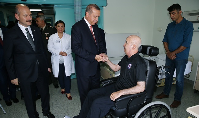 Cumhurbaşkanı Recep Tayyip Erdoğan, 15 Temmuz darbe girişimi sırasında başından vurulan Çorumlu Turgut Aslan’ı tedavi gördüğü hastanede ziyaret etti. Cumhurbaşkanı Recep Tayyip Erdoğan, 15 Temmuz darbe girişimi sırasında Jandarma Genel Komutanlığında darbeciler tarafından başından vurulan Emniyet Genel Müdürlüğü Terörle Mücadele Daire Başkanı Çorumlu hemşehrimiz Turgut Aslan’ı ziyaret etti. Cumhurbaşkanı Recep Tayyip Erdoğan, 15 Temmuz darbe girişimi sırasında Jandarma Genel Komutanlığında darbeciler tarafından başından vurulan Emniyet Genel Müdürlüğü Terörle Mücadele Daire Başkanı Turgut Aslan’ı Gaziler Fizik Tedavi ve Rehabilitasyon Eğitim Araştırma Hastanesinde ziyaret ederek geçmiş olsun dileklerini iletti.