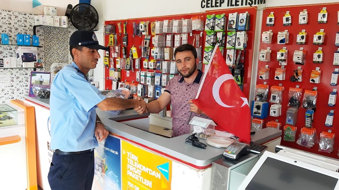 ESNAFA VE HALKA BAYRAK DAĞITTILAR