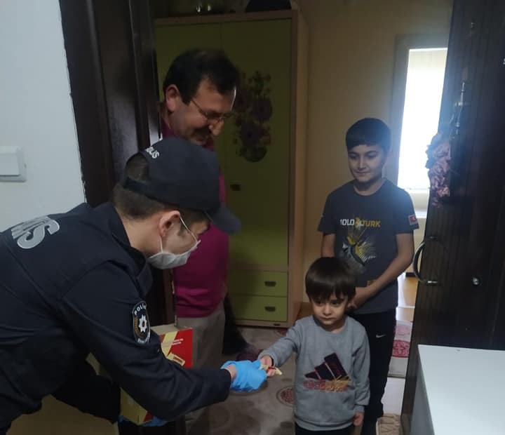 İskilip İlçe Emniyet Müdürlüğü ekipleri korona virüs tedbirleri doğrultusunda evlerinde kalan çocuklara çikolata ikram etti. Edinilen bilgilere göre Çavuş mahallesi Çayboyu Sokakta devriye görevinde bulunan İskilip Emniyet müdürlüğü ekiplerine Yazgan Apartmanında bulunan çocuklar el sallayarak sevgi gösterisinde bulundu. İçişleri Bakanlığı’nın ‘evde kal’ çağrısı ve korona virüs salgının yayılmaması için 20 yaş ve altına uyguladığı kısıtlamalar,yüzünden günlerdir,evde kalan çocukların sevgi gösterisine ve ilgisine kayıtsız kalmayan polisler Yazgan apartmanına giderek aileleri ziyaret edip evde bulunan çocuklara çikolata ikram etti. Konu hakkında açıklama yapan ev sahiplerinden Recep Yüksel İskilip İlçe Emniyet Müdürlüğü Yazgan Apartmanımıza ‘Evde Kal Türkiye’ Çağrısına uydukları için teşekkür ziyaretinde bulundu. Çocuklarımızada çikolata verdi. Başta Erol Karasu İlçe Emniyet Müdür Vekilimize ve tüm İlçe emniyet teşkilatımıza teşekkür ederiz bu ziyaretleri için dedi.