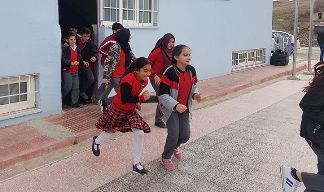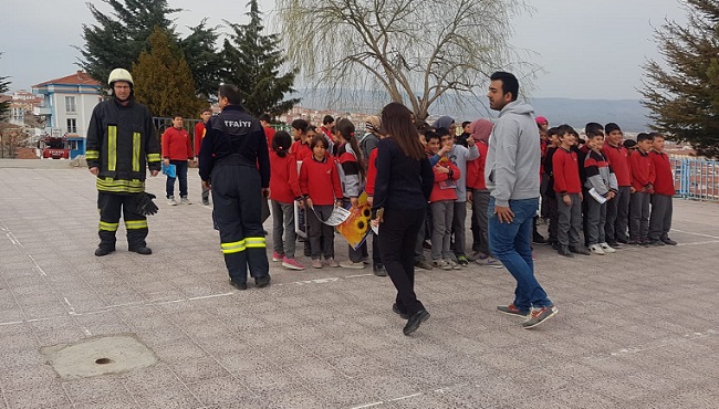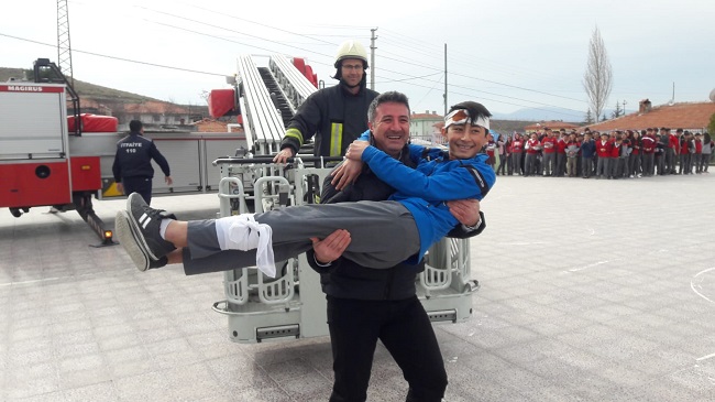 Çorum Merkez 75. Yıl Cumhuriyet Ortaokulu’nda, Çorum Belediyesi İtfaiye ekiplerinin de katılımı ile yapılan yangın tatbikatı gerçeği aratmadı. Okul Müdürü Mustafa Ergüleç ve Teknoloji ve Tasarım öğretmeni Şener Bektaş yönetiminde gerçekleştirilen tatbikatta Çorum Belediyesi itfaiye ekipleri de görev aldı. Tatbikatta İtfaiye personelinin de katkılarıyla öğrenciler gerçeği aratmayan bir etkinlik yapılmış oldu. Önce okul bahçesinde İtfaiye ekipleri, öğrencilere yangın tüplerinin nasıl çalışması gerektiğini ve yangının nasıl söndürüleceği hakkında bilgi verdikten sonra tatbikat yapıldı. Yangın esnasında okul içinde kalan öğrencilerin kurtarılması, ilk müdahalenin yapılması ve çevre güvenliği gibi olaylar ekipler tarafından sırasıyla canlandırıldı. Siren sesleri ile önce çocuklar kendilerini koruma altına alarak okul bahçesinde toplandı. Okul içinde mahsur kalan öğrenciler itfaiye ekipleri ve öğretmenler yardımı ile en kısa sürede okul bahçesine çıkarılarak ilk yardımları yapıldı. Öğrencilerin tatbikat sırasındaki heyecanları görülmeye değerdi. Okulun en üst katında mahsur kalan öğrencilerin duman arasında kalması nedeni ile içeriden müdahale edilemediği için itfaiye aracından merdiven uzatılarak pencereden kurtarıldılar. Öğrenci ve öğretmenlerin de yaparak, yaşayarak katıldıkları etkinliğin verimli geçtiğini belirten Okul Müdürü Mustafa Ergüleç, başarılı bir tatbikat geçirilmesi nedeniyle, Çorum Belediyesi İtfaiye ekiplerine, Teknoloji ve Tasarım öğretmeni Şener Bektaş’a, okul personeline ve öğrencilere teşekkür etti.