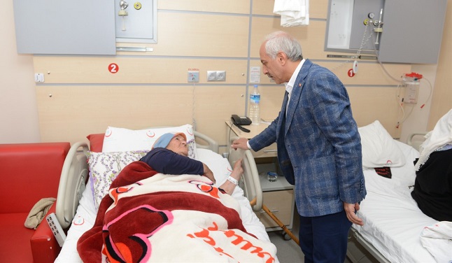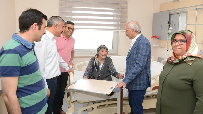Belediye Başkanı Zeki Gül, Alaca Devlet Hastanesi’nde tedavi gören hastaları ziyaret etti. Kadir gecesi münasebetiyle Alaca’ya giden Belediye Başkanı Zeki Gül, burada hem esnaf ziyareti yaptı hem de Alaca Devlet Hastanesi’nde tedavi altında tutulan hastaları ziyaret etti. Belediye Başkan Gül’e Alaca AK Parti İlçe Başkanı Halil İbrahim Şaltu, Alaca Ticaret Sanayi Odası Başkanı Günser Şirin, AK Parti İlçe yönetim kurulu üyeleri ile AK Pati teşkilatında görev alanlar katıldı. Alaca Devlet Hastanesi’nde yatan hastaları ziyaret eden Belediye Başkanı Zeki Gül, hastaların mübarek Kadir Gecelerini tebrik etti. Hastalara geçmiş olsun dileklerinde bulunan ve hastalarla sohbet eden Başkanı Zeki Gül, tedavi altındaki hastalardan son durumları hakkında yetkililerden bilgi aldı.