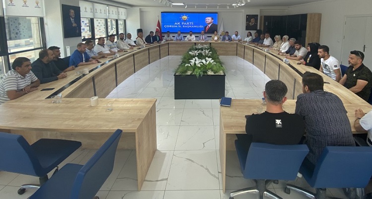 AK Parti Çorum İl Başkanı Yusuf Ahlatcı başkanlığında parti binasında yapılan toplantıya AK Parti İl Yönetim Kurulu üyeleri, Kadın Kolları Başkanı Meryem Demir ve Gençlik Kolları Başkanı Muhammet Fatih Temur katıldı.